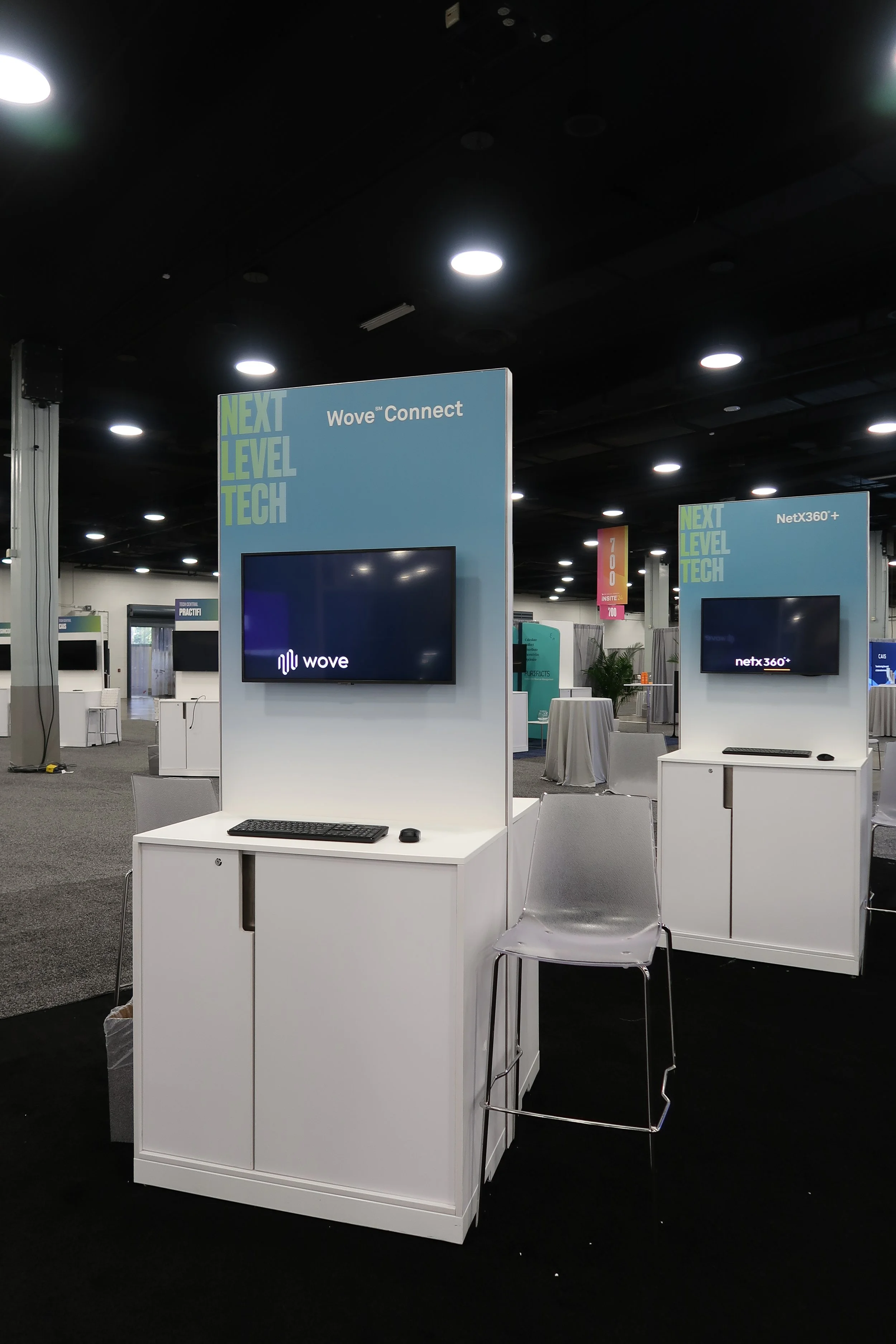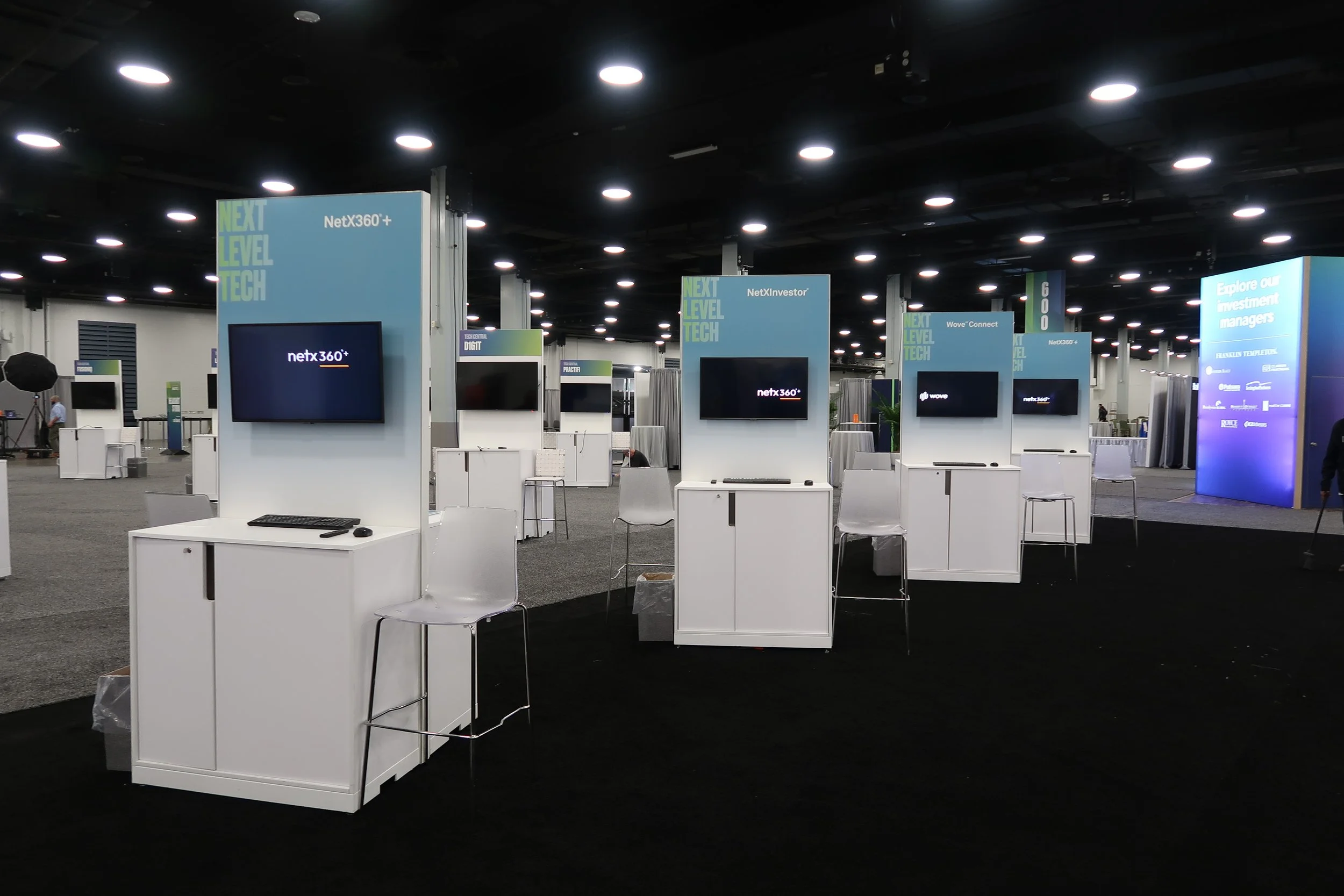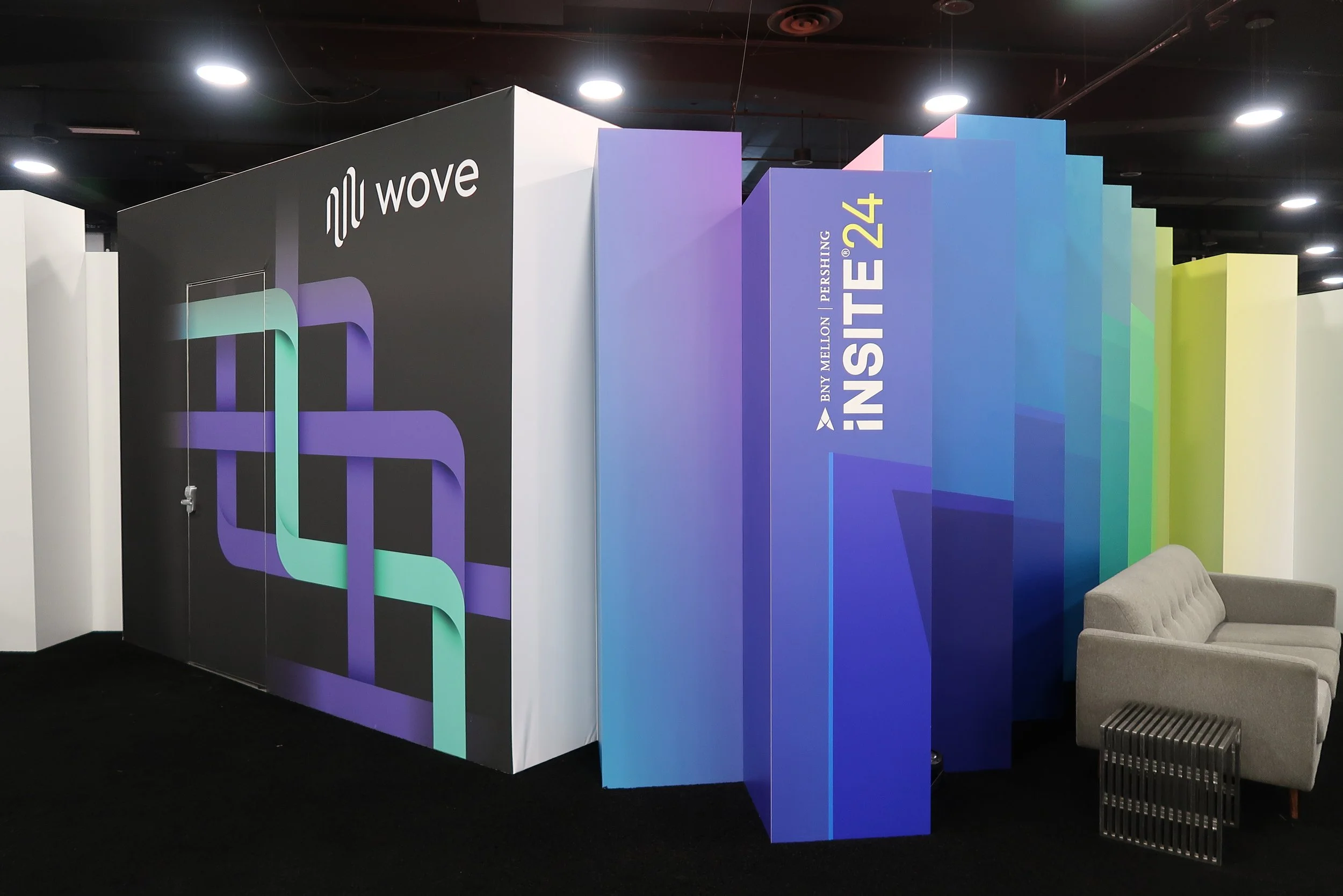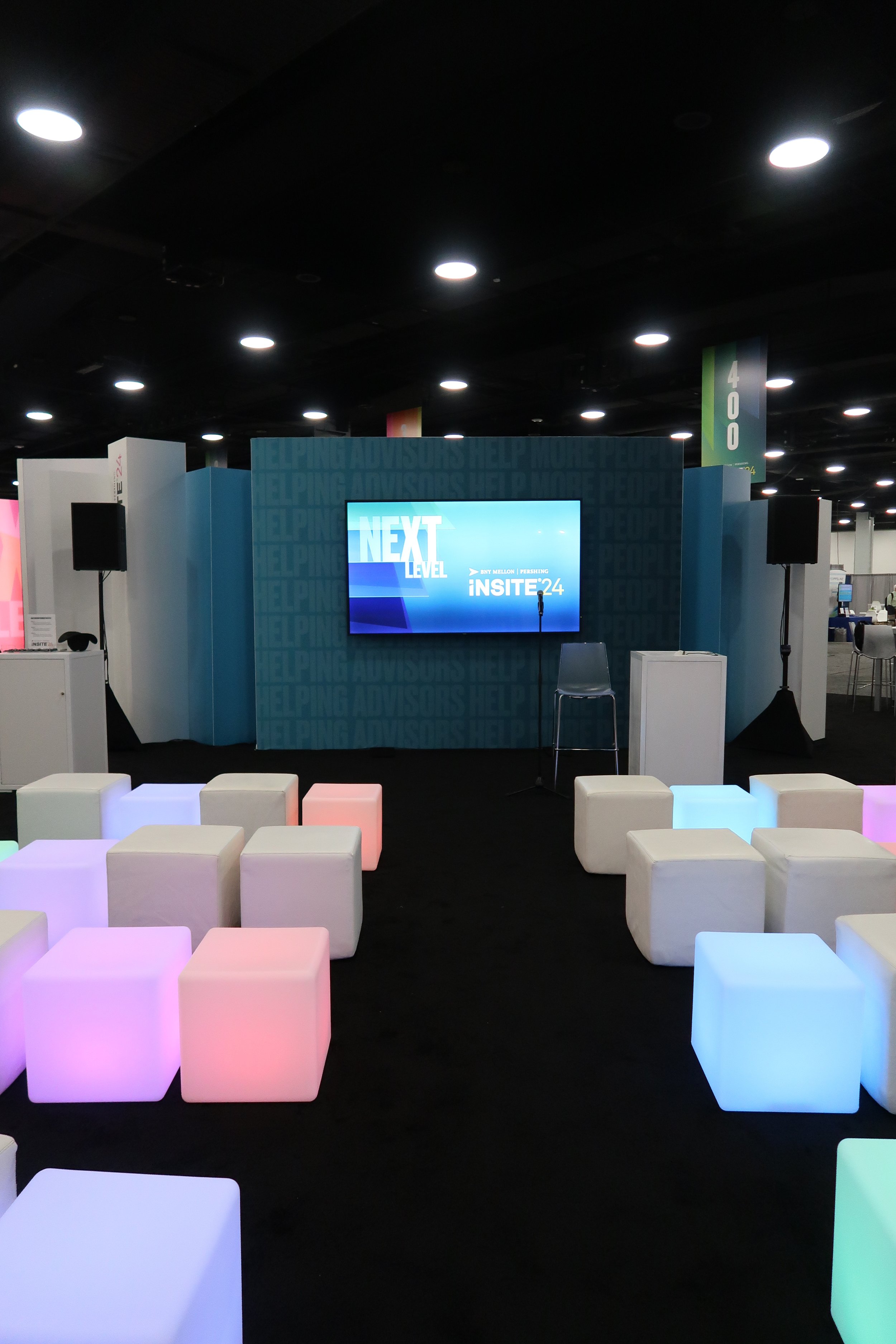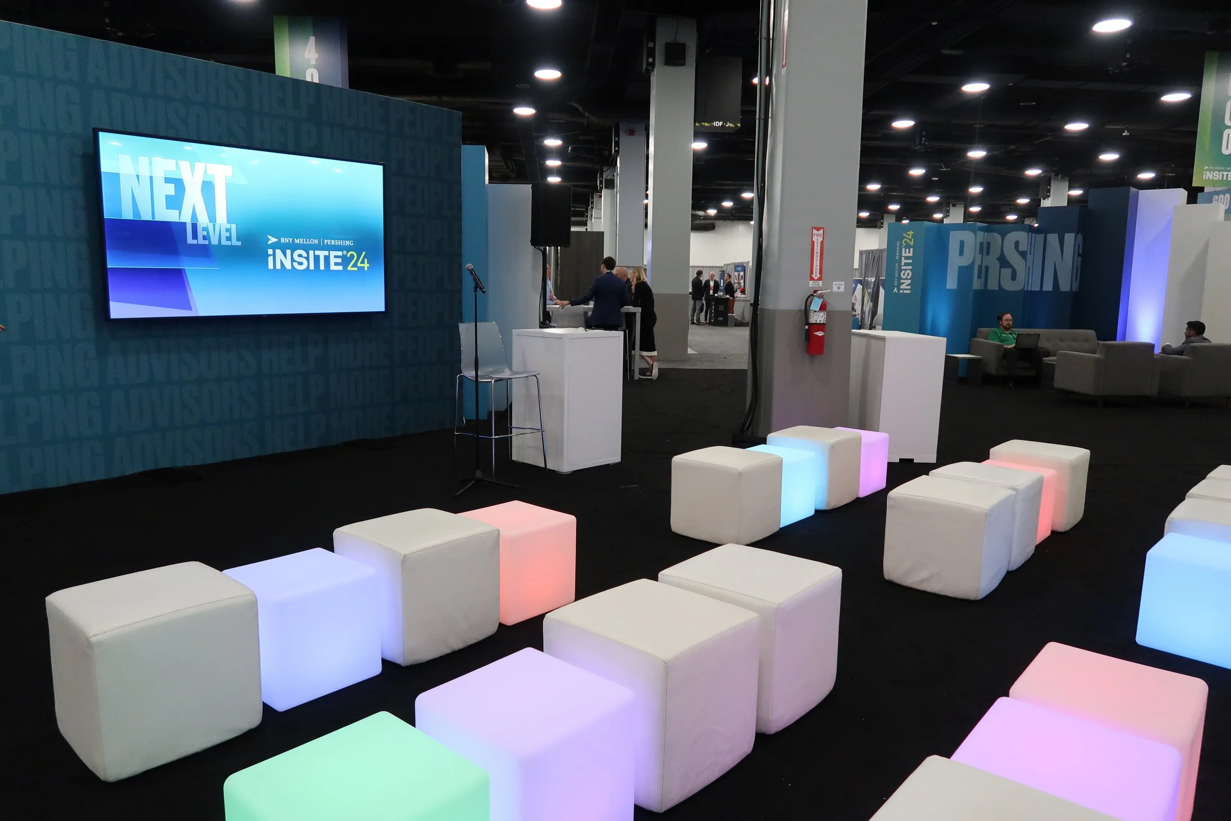 Set within tight budget, timeline and vendor constraints, the BNY team was extremely happy with the design and installation. Serving as photo moments themselves, the converging towers defined the Pavilion & brought the conference Next Level theme to new dimensions. We were able to integrate dozens of products as well as meeting areas and a presentation space for the high-demand networking space.